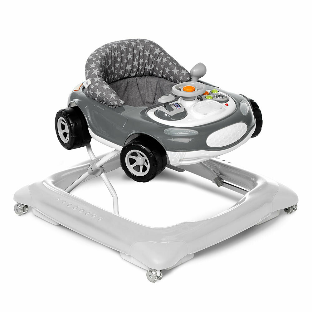 Nové obľúbené chodítko AUTO SPORT v tvare autíčka s novodobým a športovým vzhľadom od JANÉ so zvukmi a svetlami na multi aktívnom paneli. Výška sedadla sa dá nastaviť do 3 rôznych polôh. Mantinel ochráni dvere a steny. Snímateľný čalúnený poťah. Je umývateľné, mäkko polstrované a veľmi priliehavé. Vybavené systémom ochrany, ktorý zastaví chodítko pri schodoch. Extrémne tiché, silikónové kolieska sú optimálne na parketovú podlahu.