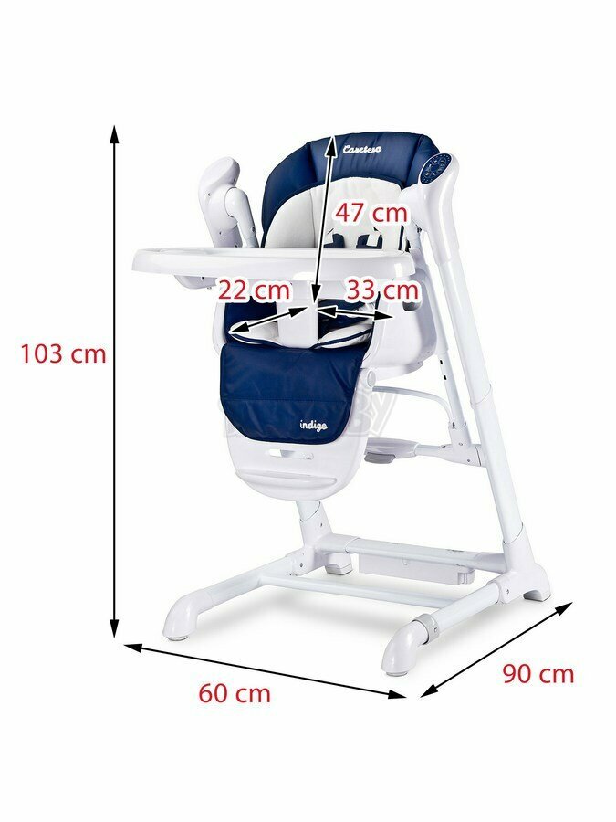 Krásna detská jedálenská stolička 2v1 Caretero Indigo. Ponúka stoličku a hojdačku v jednom sete.