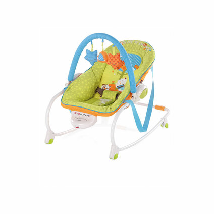 Hojdacie ležadlo-detské kresielko/jedálenská stolička s možnosťou nastavenia jemných vibrácii, či melódií. Je veľmi skladné v zloženom stave. Opierka nôh a chrbtová opierka sú nastaviteľné do viacerých polôh, aby dieťa mohlo spať, odpočívať alebo hrať sa. Snímateľný a prací poťah s mäkkou výplňou. Zadná opierka je nastaviteľná do 3 polôh.
