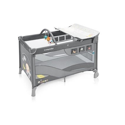 praktický skladací mechanizmus, malé rozmery po zložení bočný vchod uzamykateľný zipsom, praktické postranné vrecká dve polohy umiestnenia vnútorného matraca pohodlná prebaľovacia podložka kolieska uľahčujúce presúvanie postieľky súčasťou postieľky je praktická taška na prenášanie a hrazdička s hračkami