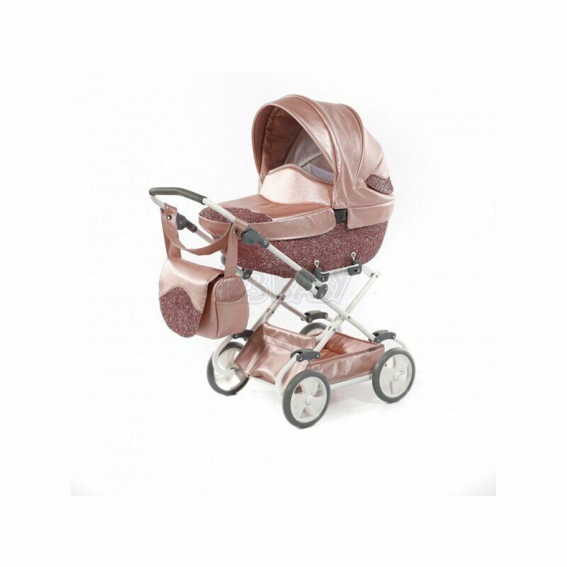 Vanička vyložená výstelkou na suchý zips Na dne vaničky je matrac Všetko je ľahko prateľné Taška na rukoväť na zips Taška zavesená na rukoväť na cvoky Tašku je možné nosiť ako cross body kabelku Nákupný košík pod kočíkom Nánožník na suchý zips Polohovacia rukoväť hore/dole Kočík je možné hojdať Polohovacia strieška Odvetranie striešky jemnou sieťkou Krásny vzor na strieške a nánožníku Kočík je vyrobený z EKO kože Jednoduchá údržba