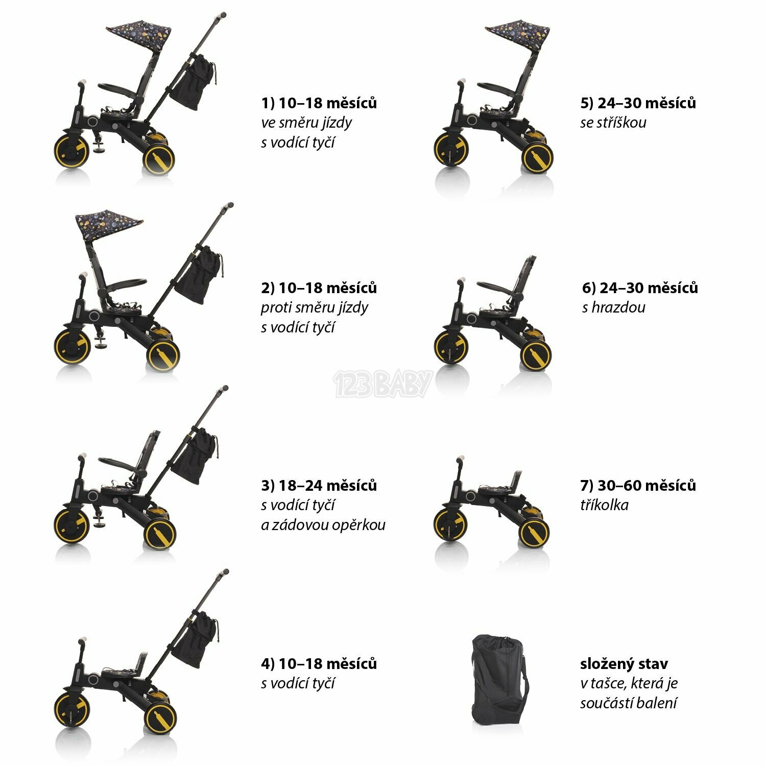 Odnímateľná strieška, šlapátka, vodiaca tyč a opierka chrbta, nastavenie po a proti smeru jazdy, bezpečnostný pás, ľahké zloženie - to je trojkolka Nova 2. Vhodné pre deti od 10 mesiacov do 5 rokov.