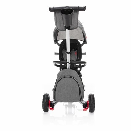 - U tříkolky Nova můžete, díky snadnému otáčení sedátka, umožnit děťátku sezení po či proti směru jízdy. Odpojitelná šlapátka a řídítka zase zajistí jeho pasivní pozici, kdy tříkolku řídíte pouze vy. Rukojeť – neboli vodicí tyč, je nastavitelná tak, aby se dala přizpůsobit výšce rodičů. Na této tříkolce nechybí ani brzda zadních koleček. O zajištění bezpečnosti děťátka se postarají 5bodové bezpečnostní pásy, odklápěcí hrazdička a shrnovací stříška s UV ochranou. Na výletě i delších cestách děťátku zajistí pohodlné cestování nafukovací kola, která spolehlivě odfiltrují nerovnosti a umožní mu tak hladkou jízdu.
