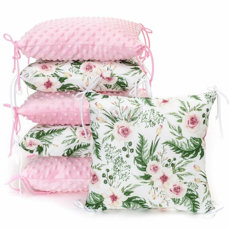 - Vankúšikový mantinel T-TOMI tvorený 6 kusmi jednotlivých vankúšikov o veľkosti 35x35 cm vyrobený ze 100% bavlny a z jemného, hrejivého a luxusného materiálu MINKY (3+3). Vankúšiky T-TOMI možno uviazať po bočnej strane postieľky a poskytnú tak Vášmu bábätku ochranu, pohodlie a bezpečie. Bábätko sa bude cítit v postieľke príjemnejšie než vo voľnom otvorenom priestore, bude pokojnejšie zaspávať.