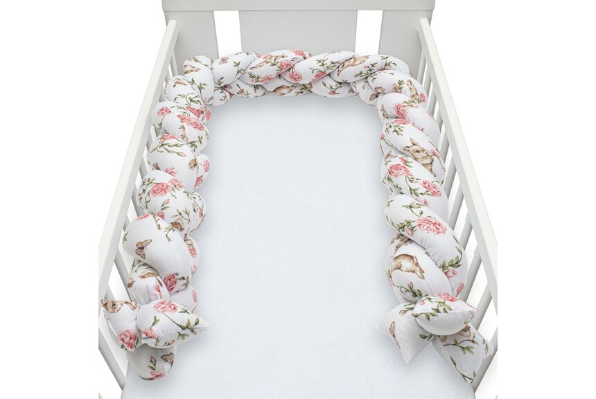 Hebučký a praktický pletený vrkoč New Baby je modernou alternatívou tradičného alebo vankúšového mantinelu nielen do detskej postieľky. Všetky tri pramene sú vyrobené z veľmi kvalitného bavlneného materiálu a antialergickej polyesterovej výplne a ručne spletených do vrkoča. Môžete ho použiť v postieľke, kolíske, kde chráni dieťa pred tvrdými priečkami postieľky a izoluje od studenej steny. Mantinel sa prispôsobí každej postieľke a pomocou troch priložených stúh ho ľahko upevníte. Staršie dieťa ho môže využívať pre zábavu alebo ako originálnu dekoráciu detskej izby.